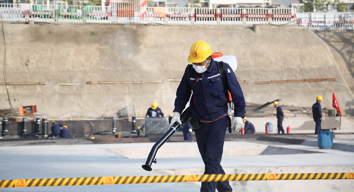 延承欧美主流技术、结合国内工程实践,精益求精。制定沥青、高分子卷材、涂料等多种防水材料的标准化施工工艺。普适应用,制作示范样板,规范数十种细部节点做法,“千人一面”。配备机械化施工工具,提高质量及功效。